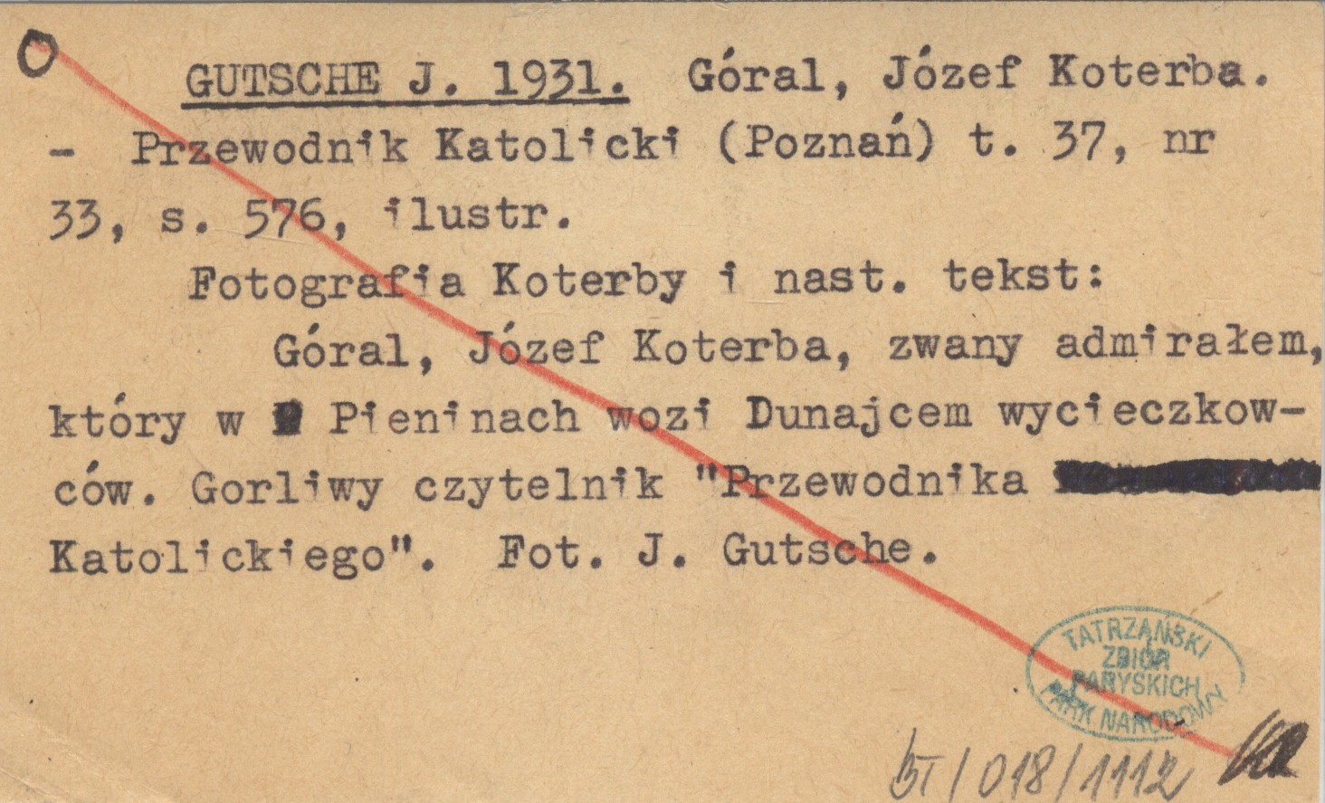 Przewodnik Katolicki (Poznań) , T. 37, nr 33, s. 576, il. Fotografia Koterby i nast. tekst: Góral, Józef Koterba, zwany admirałem, który w Pieninach wozi Dunajcem wycieczkowców. Gorliwy czytelnik "Przewodnika Katolickiego". Fot. J. Gutsche.