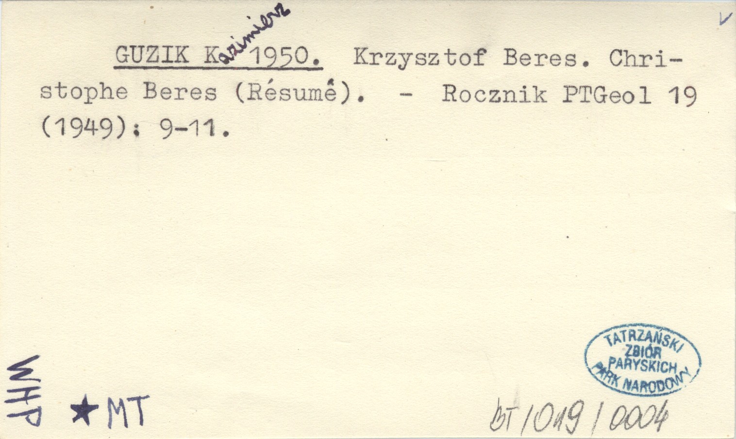 GUZIK Kazimierz 1950 Krzysztof Beres. Christophe Beres (Résume).