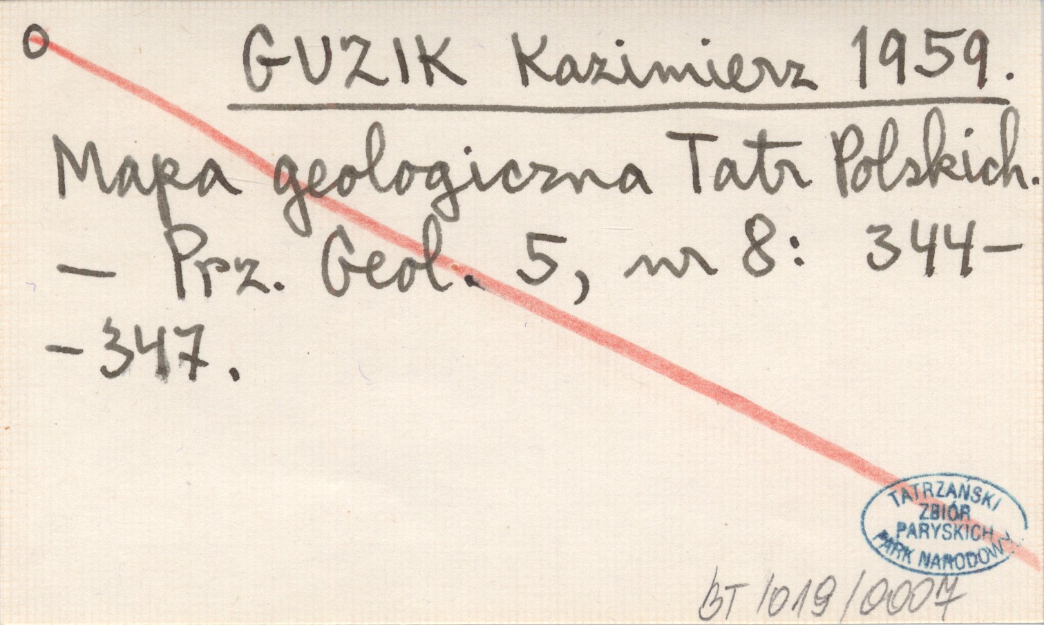 GUZIK Kazimierz 1959 Mapa geologiczna Tatr Polskich.