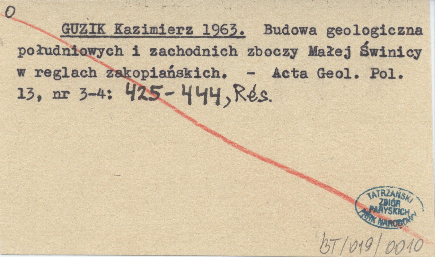 GUZIK Kazimierz 1963 Budowa geologiczna południowych i zachodnich zboczy Małej Świnicy w reglach zakopiańskich.