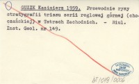 GUZIK Kazimierz 1959 PPrzewodnie rysy stratygrafii triasu serii reglowej górnej (choczańskiej) w Tatrach Zachodnich.