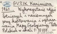 GUZIK Kazimierz 1961... Wykorzystanie zdjęć lotniczych i naziemnych przy kartowaniu i opracowaniu Mapy Geologicznej Tatr Polskich w skali 1: 10 000.