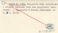 GUZIK K. 1968 Karpackie wody powodziowe - cennymi zasobami wody dla gospodarki narodowej.