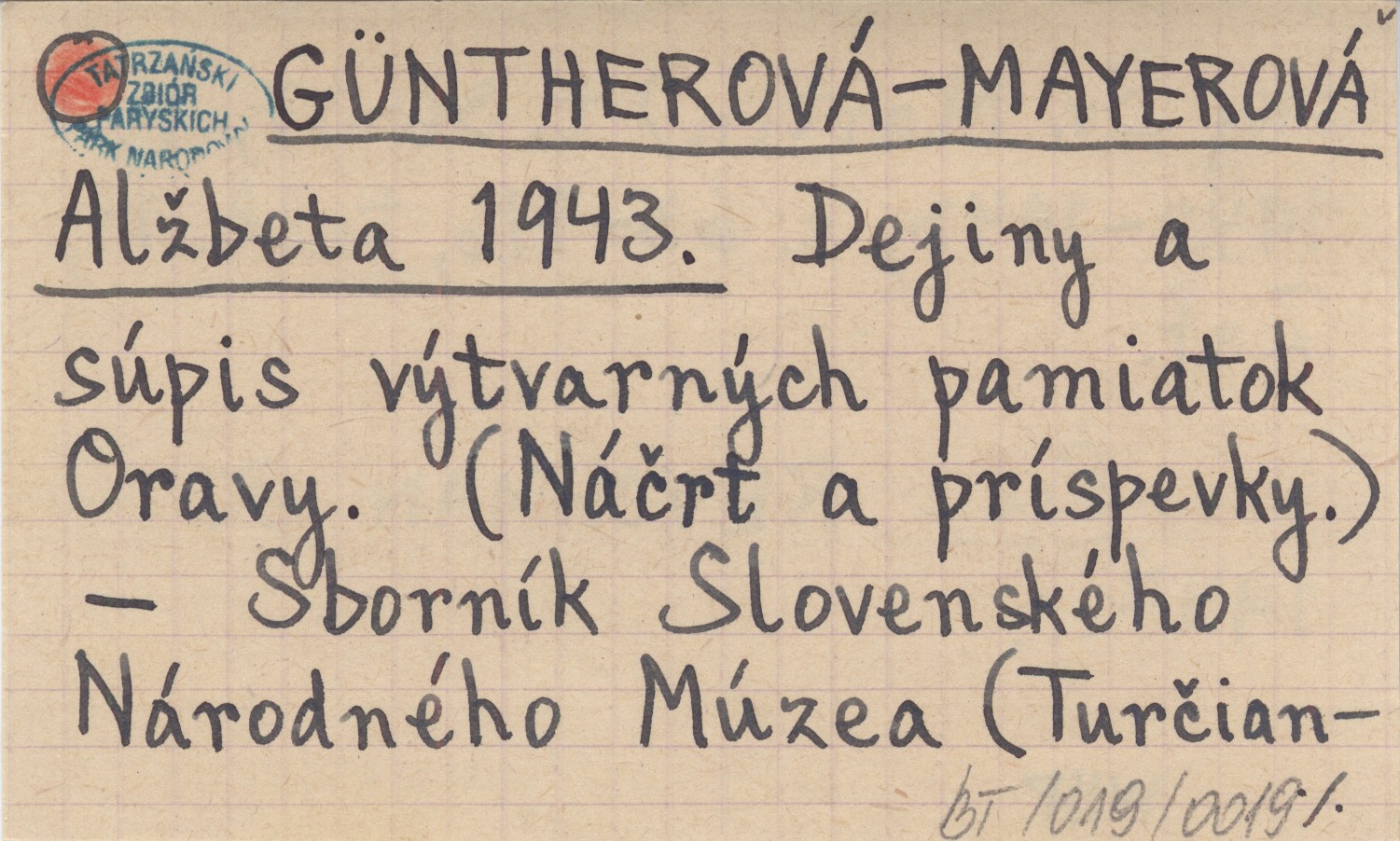 GÜNTHEROVÁ-MAYEROVÁ Alľbeta 1943 Dejiny a súpis výtvarných pamiatok Oravy. (Náčrt a príspevky).