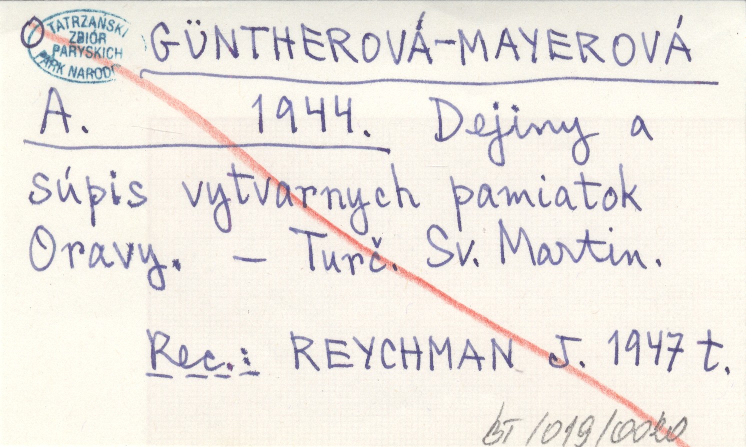 GÜNTHEROVÁ-MAYEROVÁ A. 1944 Dejiny a súpis vytvarnych pamiatok Oravy.