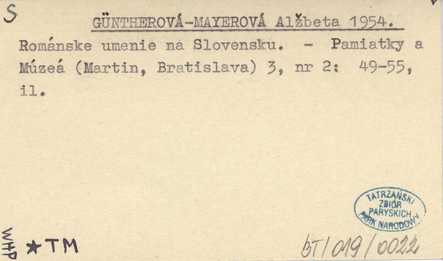GÜNTHEROVÁ-MAYEROVÁ Alžbeta 1954 Románske umenie na Slovensku.