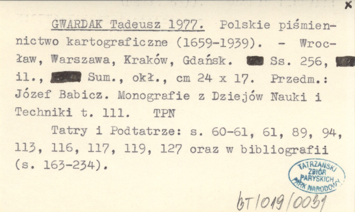 GWARDEK Tadeusz 1977 Polskie piśmiennictwo kartograficzne (1659-1939).
