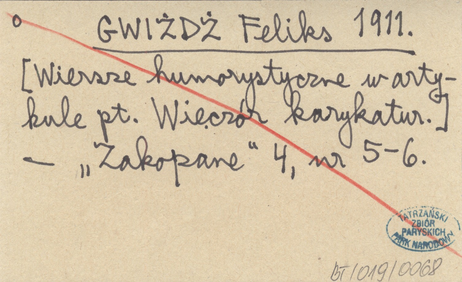 GWIŻDŻ Feliks 1911 [Wiersze humorystyczne w artykule pt. Wieczór karykatur].
