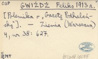 GWIŻDŻ Feliks 1913 a [Polemika o "Gazetę Podhalańską"].