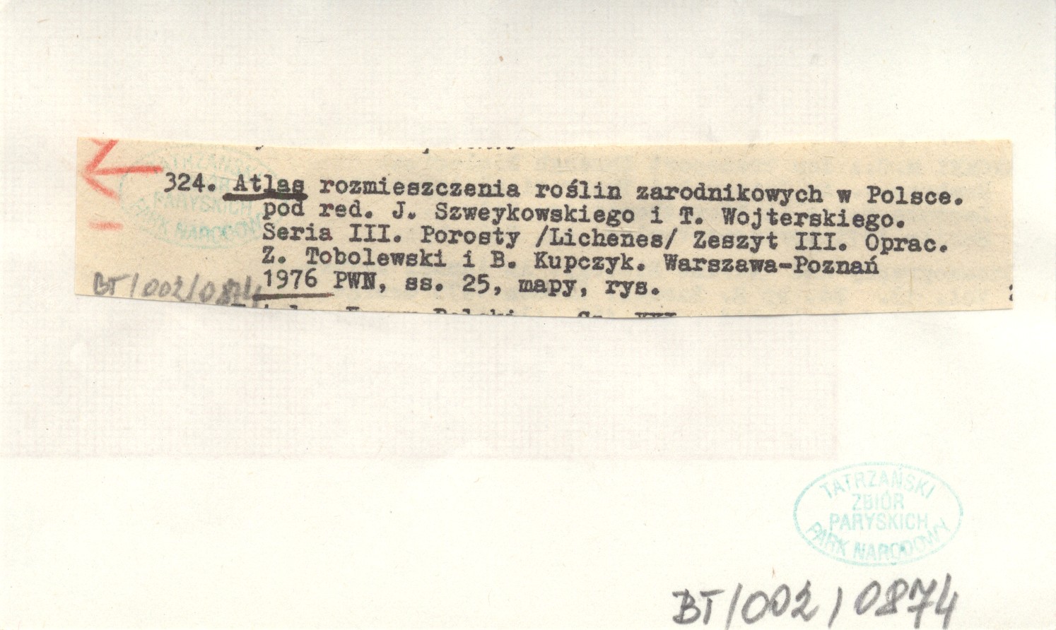 RED: Szweykowski, J. ; Wojterski, T. ; Atlas rozmieszczenia roślin zarodnikowych w Polsce. Seria III. Porosty (Lichenes). 1976
