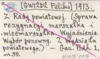 [GWIŻDŻ Feliks] 1913 Z Rady powiatowej. (Sprawa rezygnacyi marszałka i wicemarszałka. Wyjaśnienia. Wybór ponowny. Z Wydziału powiatowego).