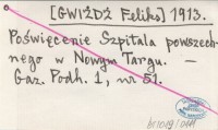 [GWIŻDŻ Feliks] 1913 Poświęcenie Szpitala powszechnego w Nowym Targu.