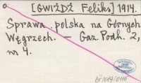 [GWIŻDŻ Feliks] 1914 Sprawa polska na Górnych Węgrzech.