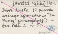 [GWIŻDŻ Feliks] 1914 Dobre dzieło. (Z powodu walnego zgromadzenia Tow. Bursy gimnazjalnej).