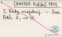 [GWIŻDŻ Feliks] 1914 Z Rady miejskiej.