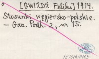 [GWIŻDŻ Feliks] 1914 Stosunki węgiersko-polskie.