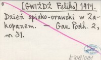 [GWIŻDŻ Feliks] 1914 Dzień spisko-orawski w Zakopanem.