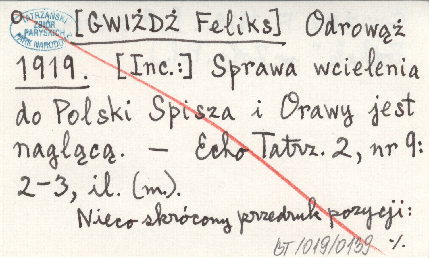 Odrowąż [GWIŻDŻ Feliks] 1919 [Inc.:] Sprawa wcielenia do Polski Spisza i Orawy jest nagląca.