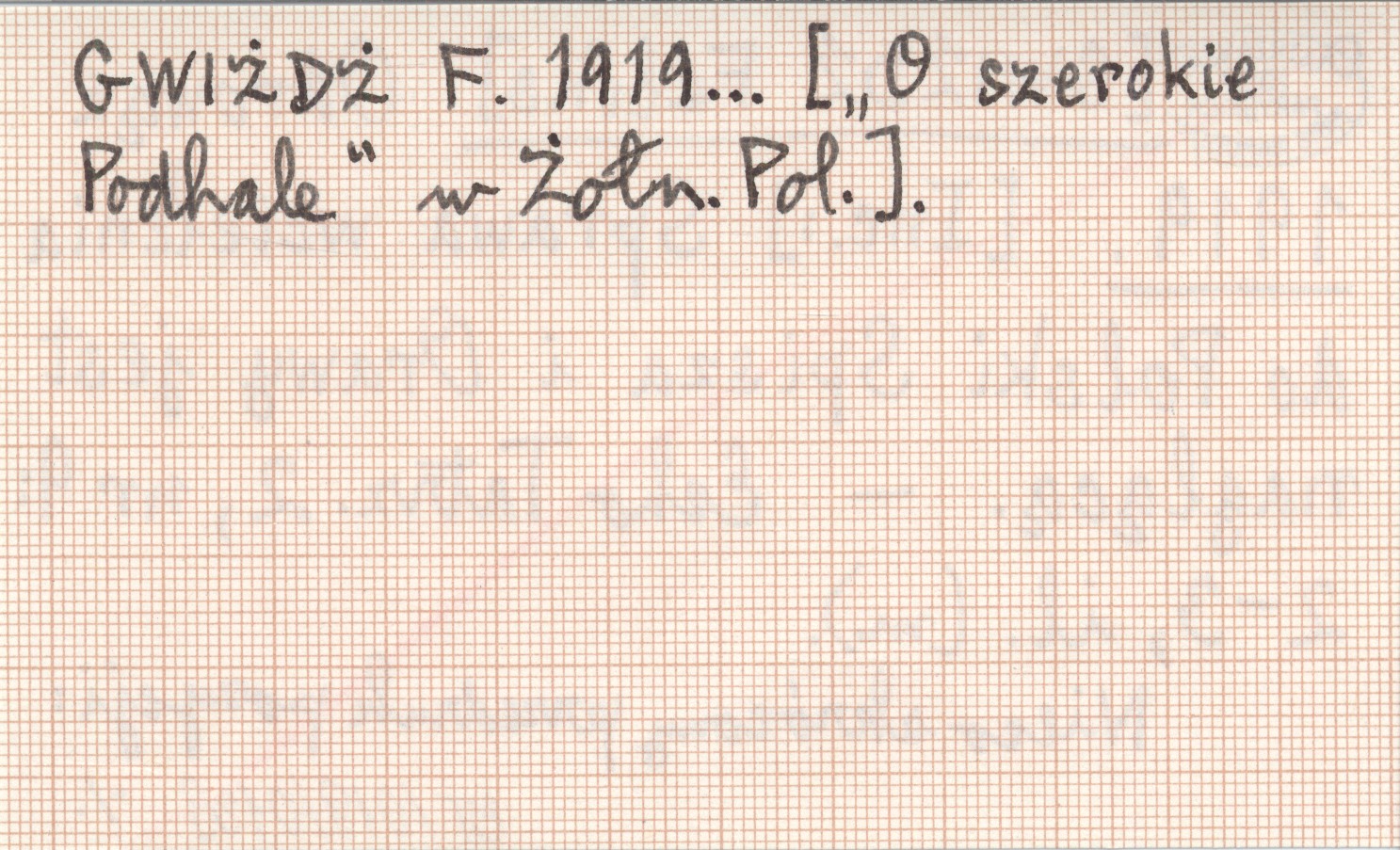 Echo Tatrzańskie, 2, nr 9: 2-3, il., (m.). Nieco skrócony przedruk pozycji: GWIŻDŻ F. 1919... ["O szerokie Podhale" w Żołnierzu Polskim].