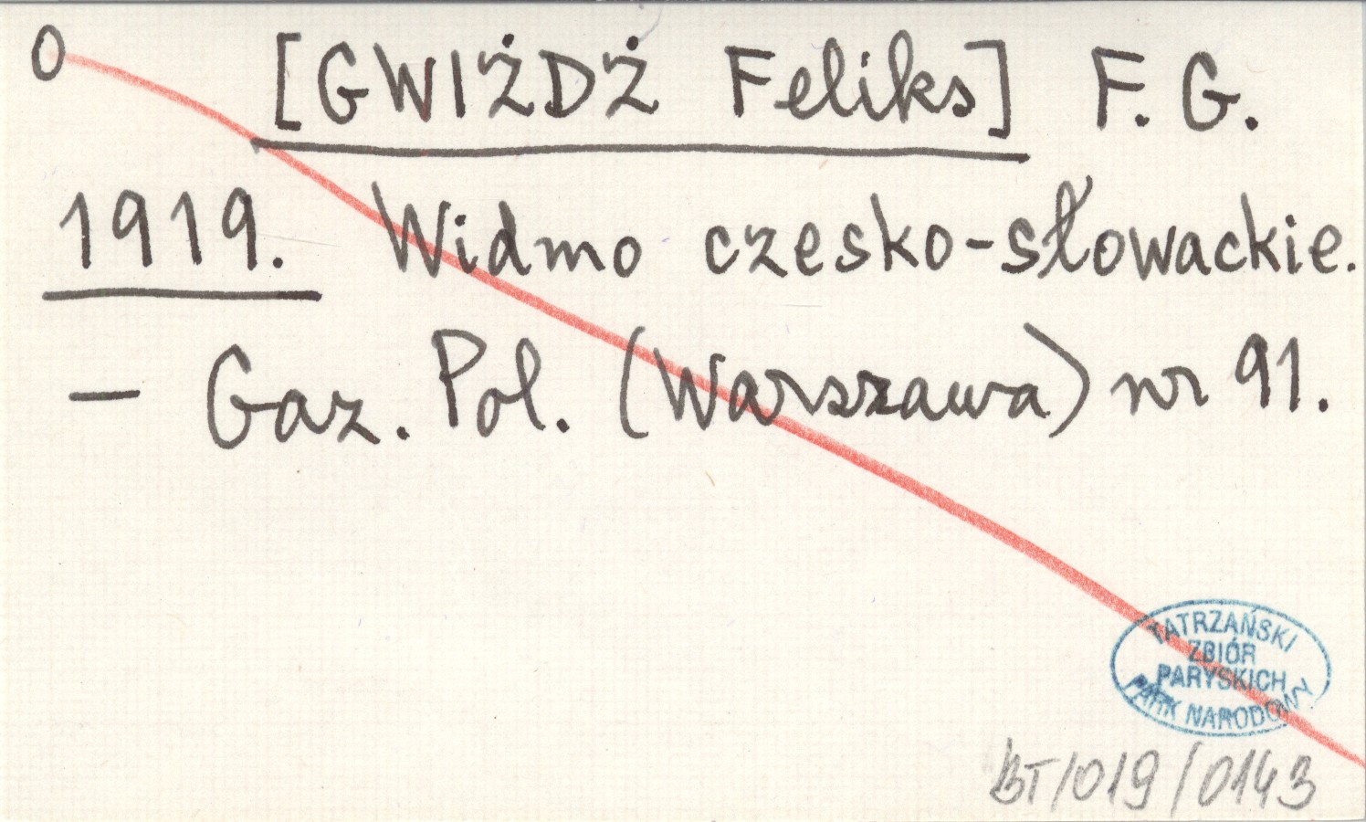 F. G. [GWIŻDŻ Feliks] 1919 Widmo czesko-słowackie.