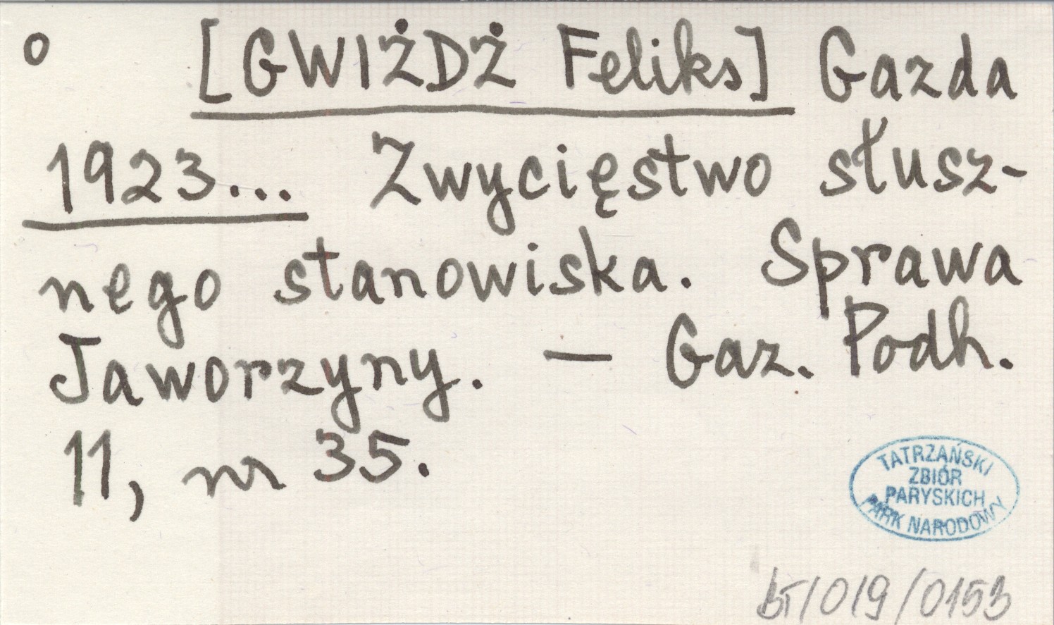 Gazda [GWIŻDŻ Feliks] 1923... Zwycięstwo słusznego stanowiska. Sprawa Jaworzyny.