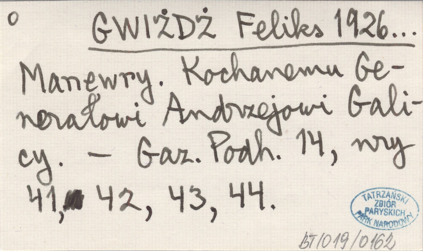 Manewry. Kochanemu Generałowi Andrzejowi Galicy.