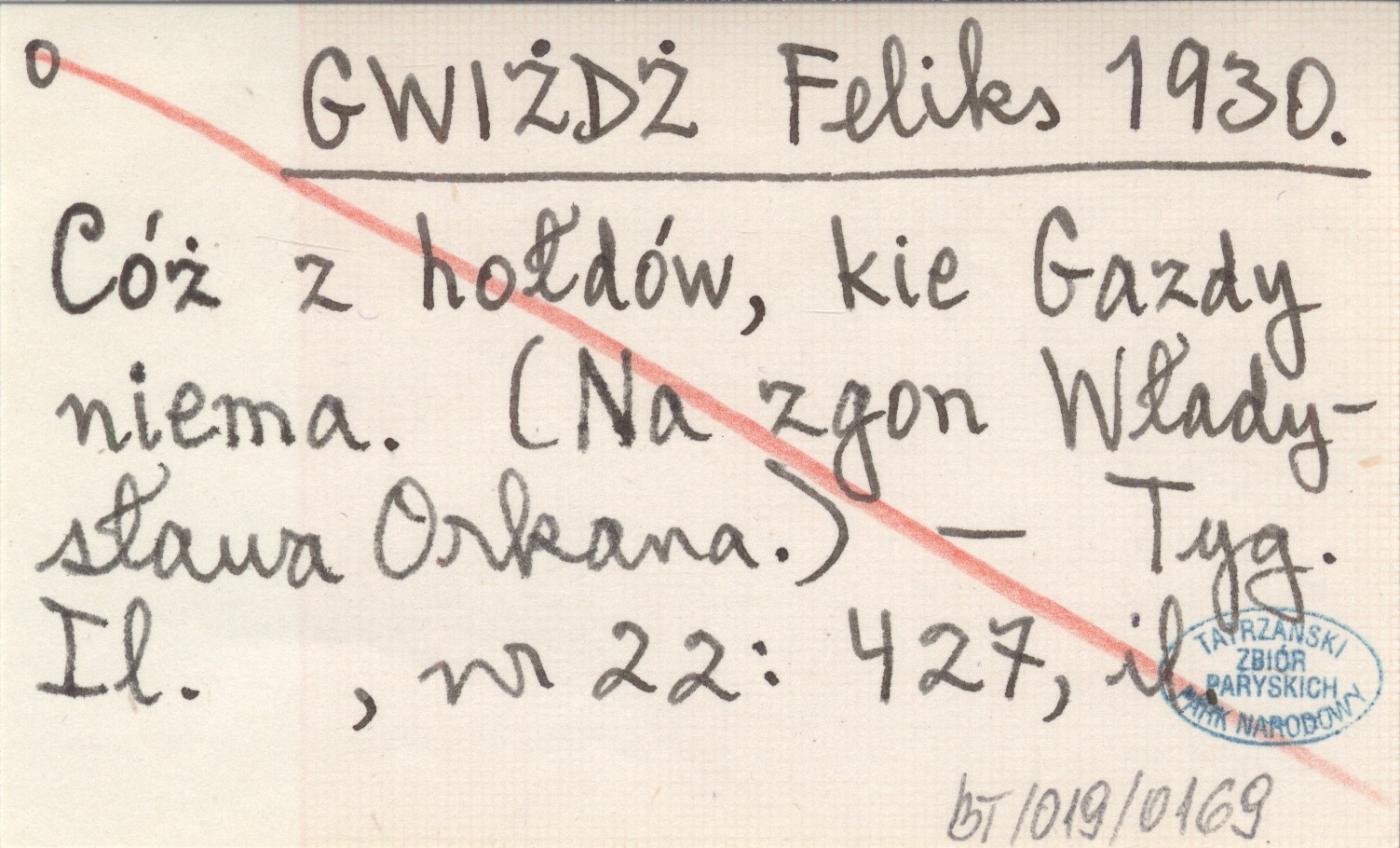 GWIŻDŻ Feliks 1930 Cóż z hołdów, kie Gazdy niema. (Na zgon Władysława Orkana).