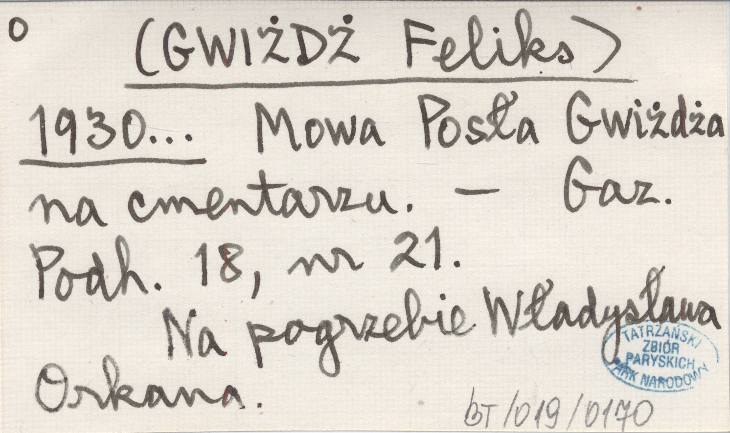 (GWIŻDŻ Feliks) 1930... Mowa Posła Gwiżdża na cmentarzu.