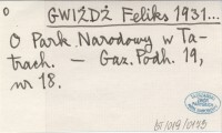 GWIŻDŻ Feliks 1931... O Park Narodowy w Tatrach.