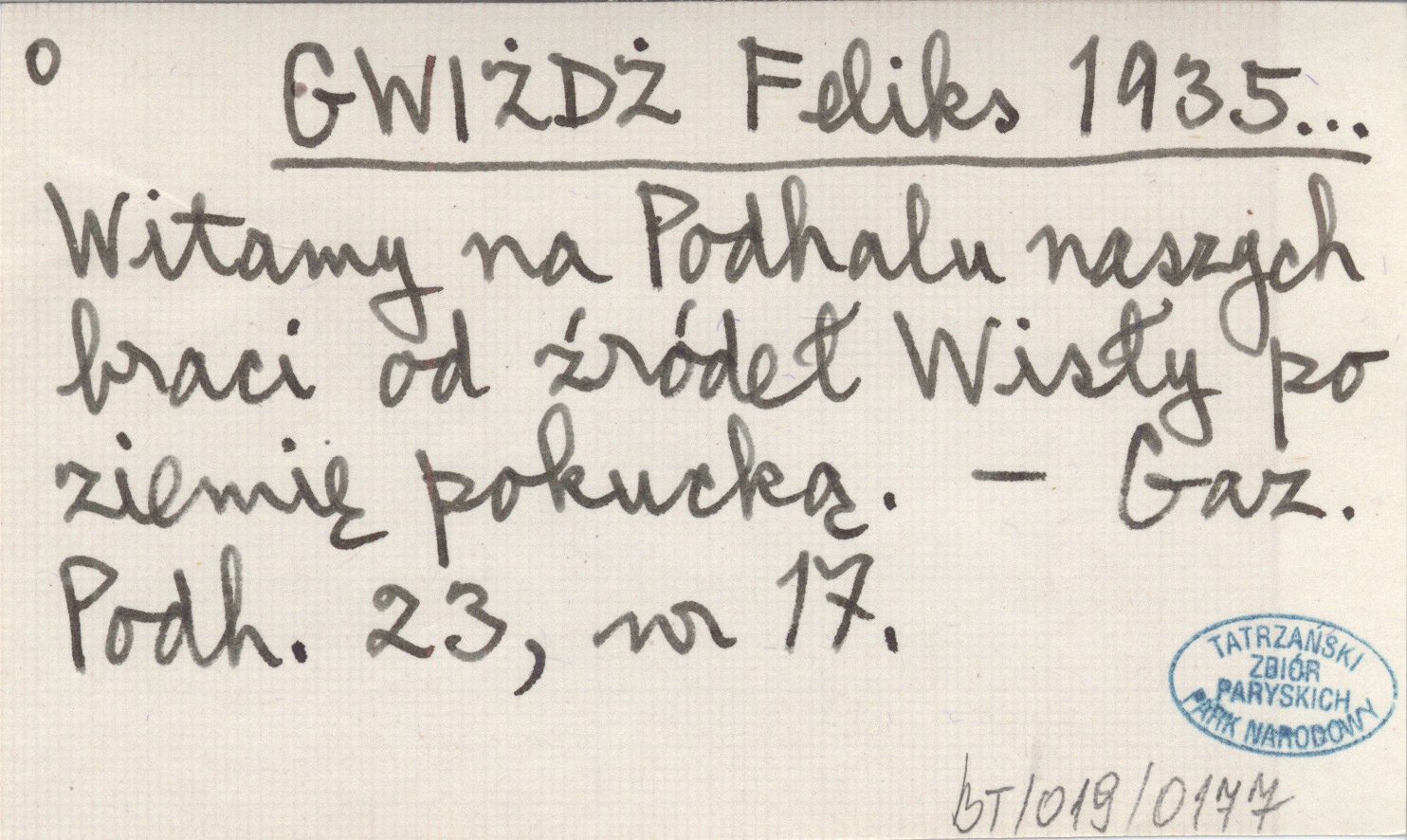 GWIŻDŻ Feliks 1935... Witamy na Podhalu naszych braci od źródeł Wisły po ziemię pokucką.