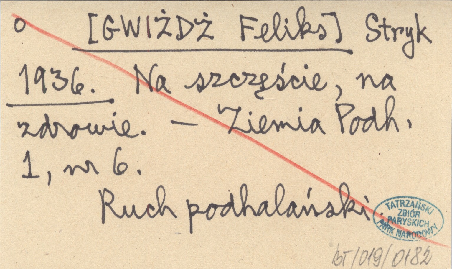Stryk [GWIŻDŻ Feliks] 1936 Na szczęście, na zdrowie.