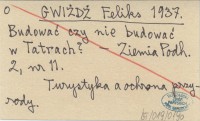 GWIŻDŻ Feliks 1937 Budować czy nie budować w Tatrach?