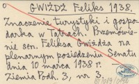 GWIŻDŻ Feliks 1938 Znaczenie turystyki i gospodarka w Tatrach. Przemówienie sen. Feliksa Gwiżdża na plenarnym posiedzeniu Senatu dnia 10 marca 1938 r.