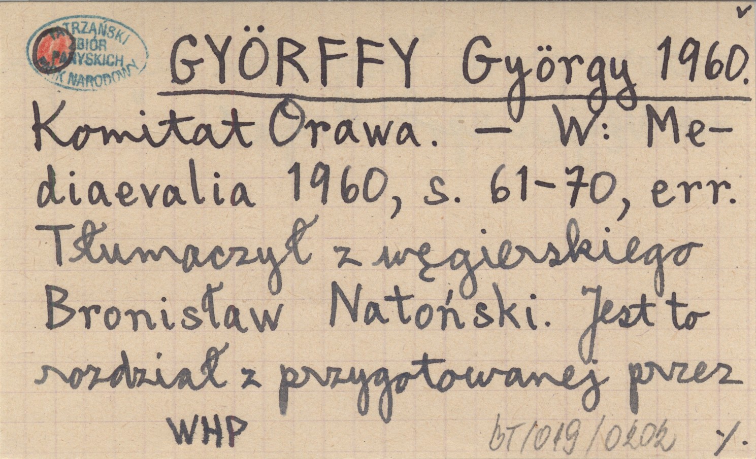 Mediaevalia 1960, S. 61-70, err. , Tłumaczył z węgierskiego Bronisław Natoński. Jest to rozdział z przygotowanej przez autora pracy "Geografia historyczna Węgier epoki Arpadów".