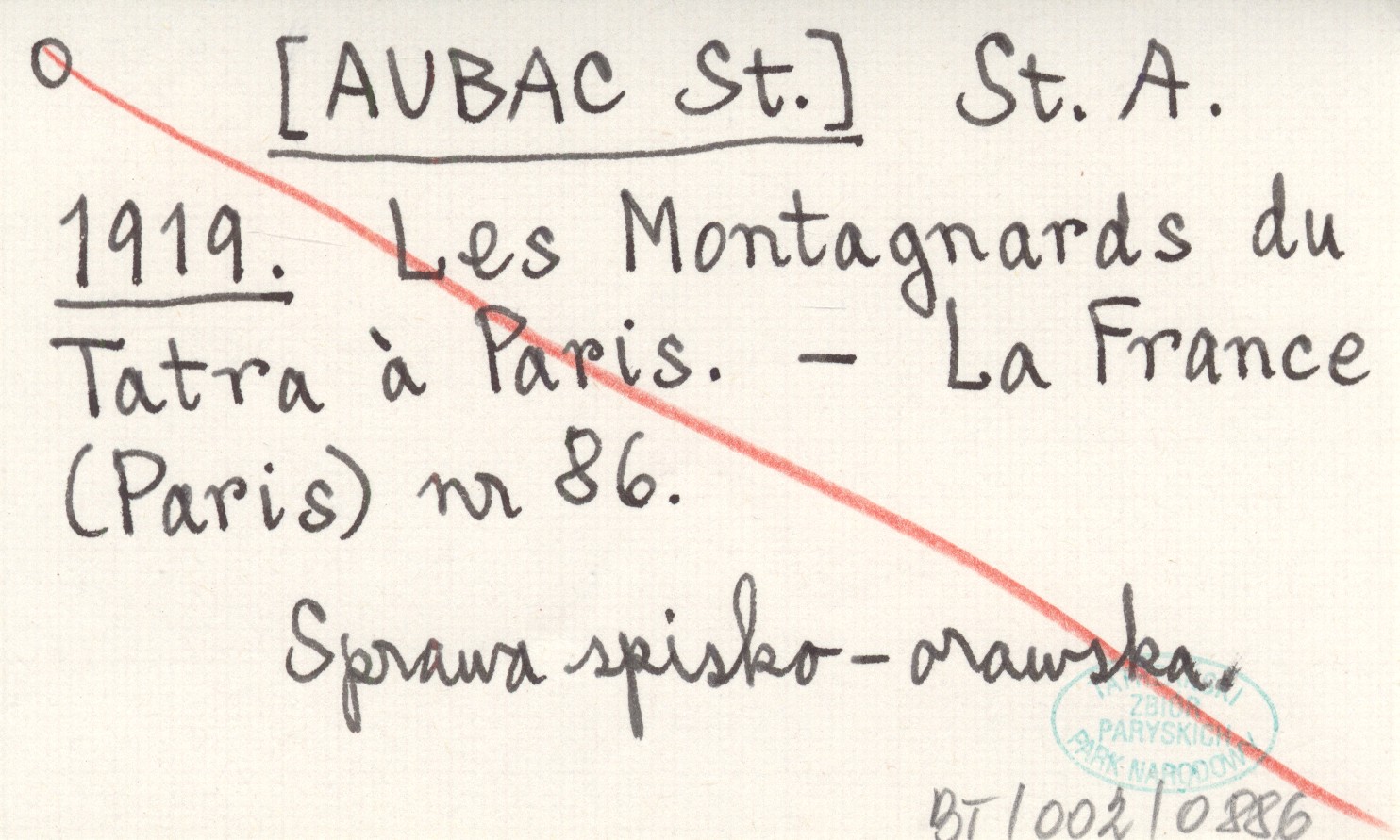 St. A. [AUBAC St.] 1919 Les Montagnards du Tatra á Paris.