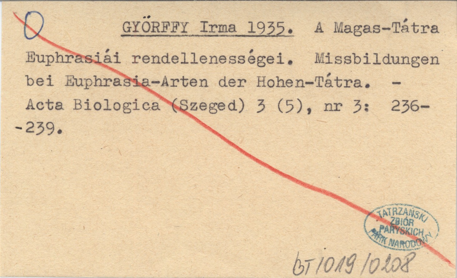 GYŐRFFY Irma 1935 A Magas-Tátra Euphrasiái rendellenességei. Missbildungen bei Euphrasia-Arten der Hohen-Tátra.