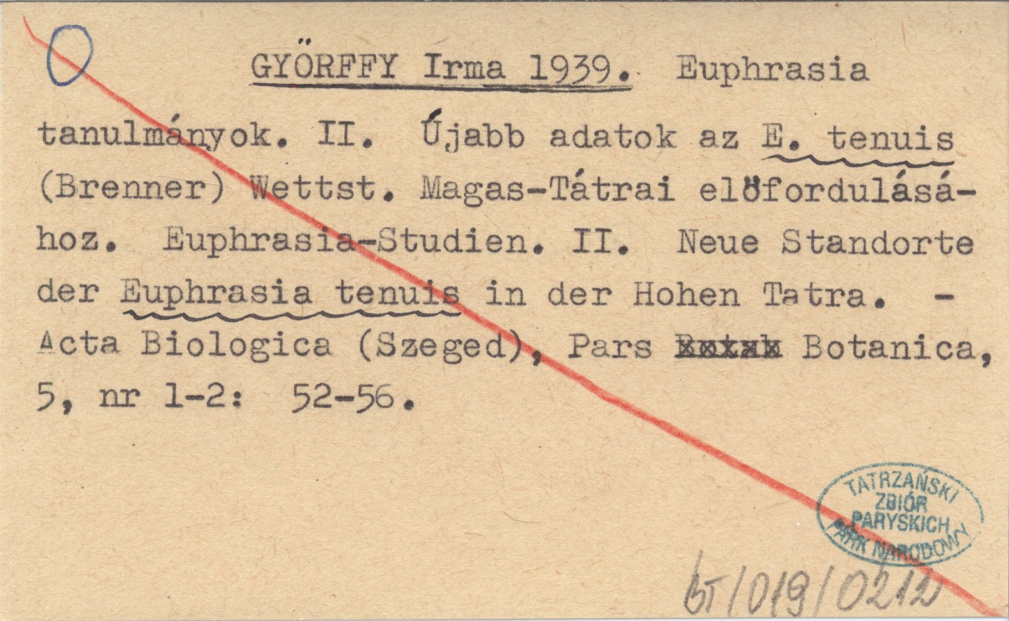 GYŐRFFY Irma 1939 Euphrasia tanulmányok. II. Újabb adatok az E. tenuis (Brenner) Wettst. Magas-Tátrai elöfordulásához. Euphrasia-Studien. II. Neue Standorte der Euphrasia tenuis in der Hohen Tatra.