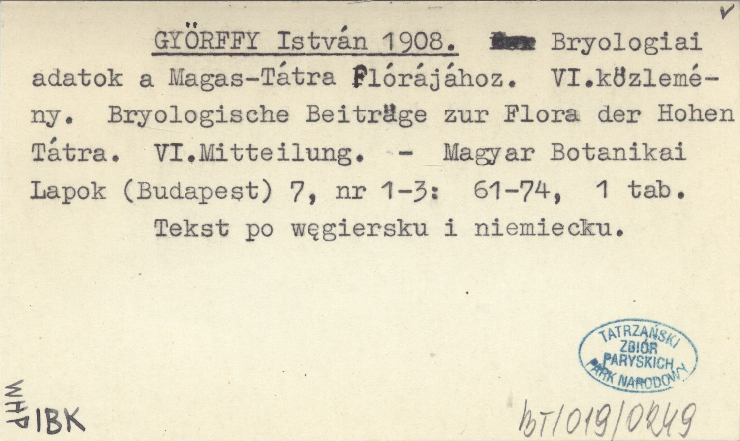 GYŐRFFY István 1908 Brylogiai adatok a Magas-Tátra flórájához. VI.közlemény. Brylogische Beiträge zur Flora der Hohen Tátra. VI.Mitteilung.