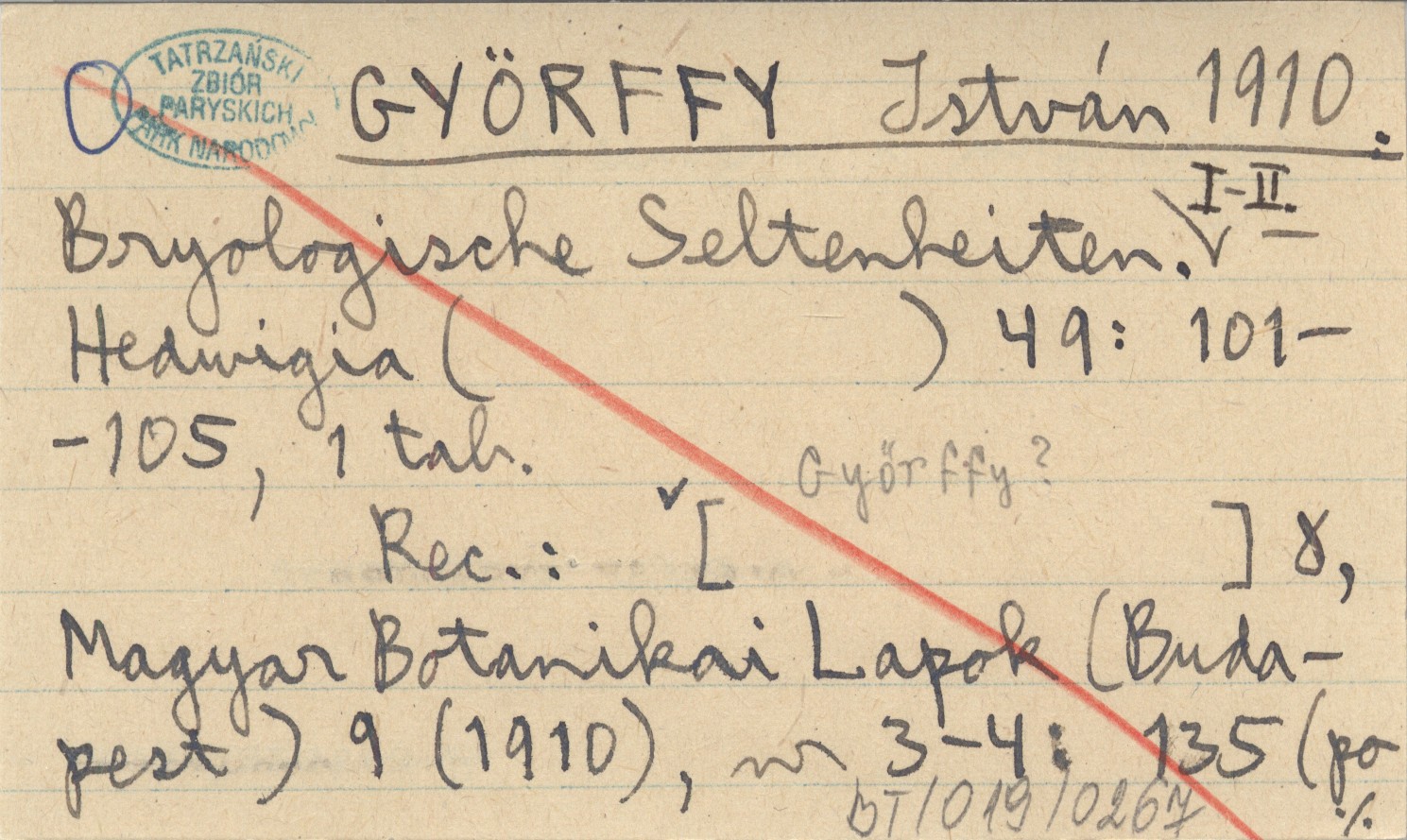 GYŐRFFY István 1910 Bryologische Seltenheiten. I-II.
