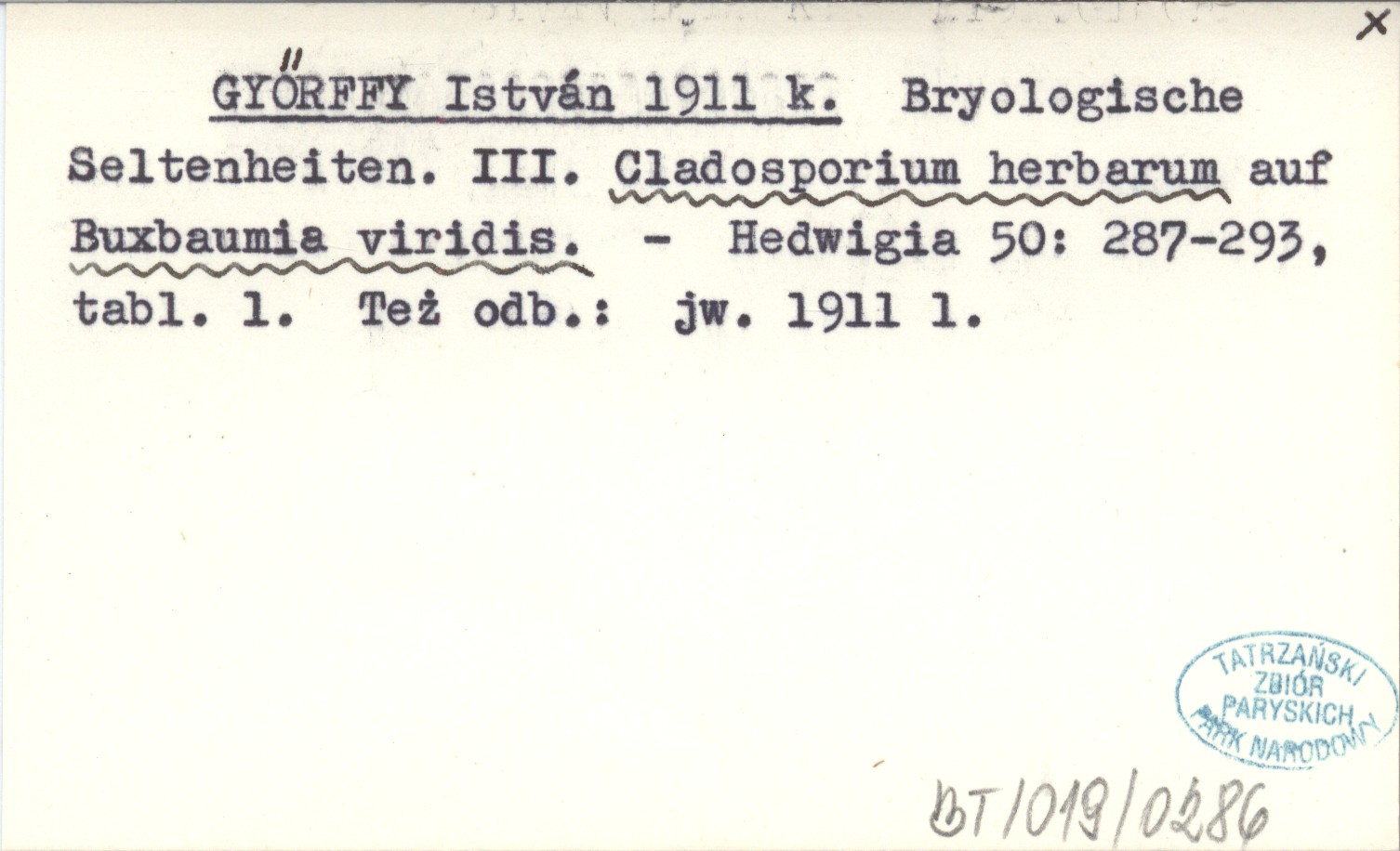 GYŐRFFY István 1911 k Bryologische Seltenheiten. III. Cladosporium herbarum auf Bauxbaumia viridis.