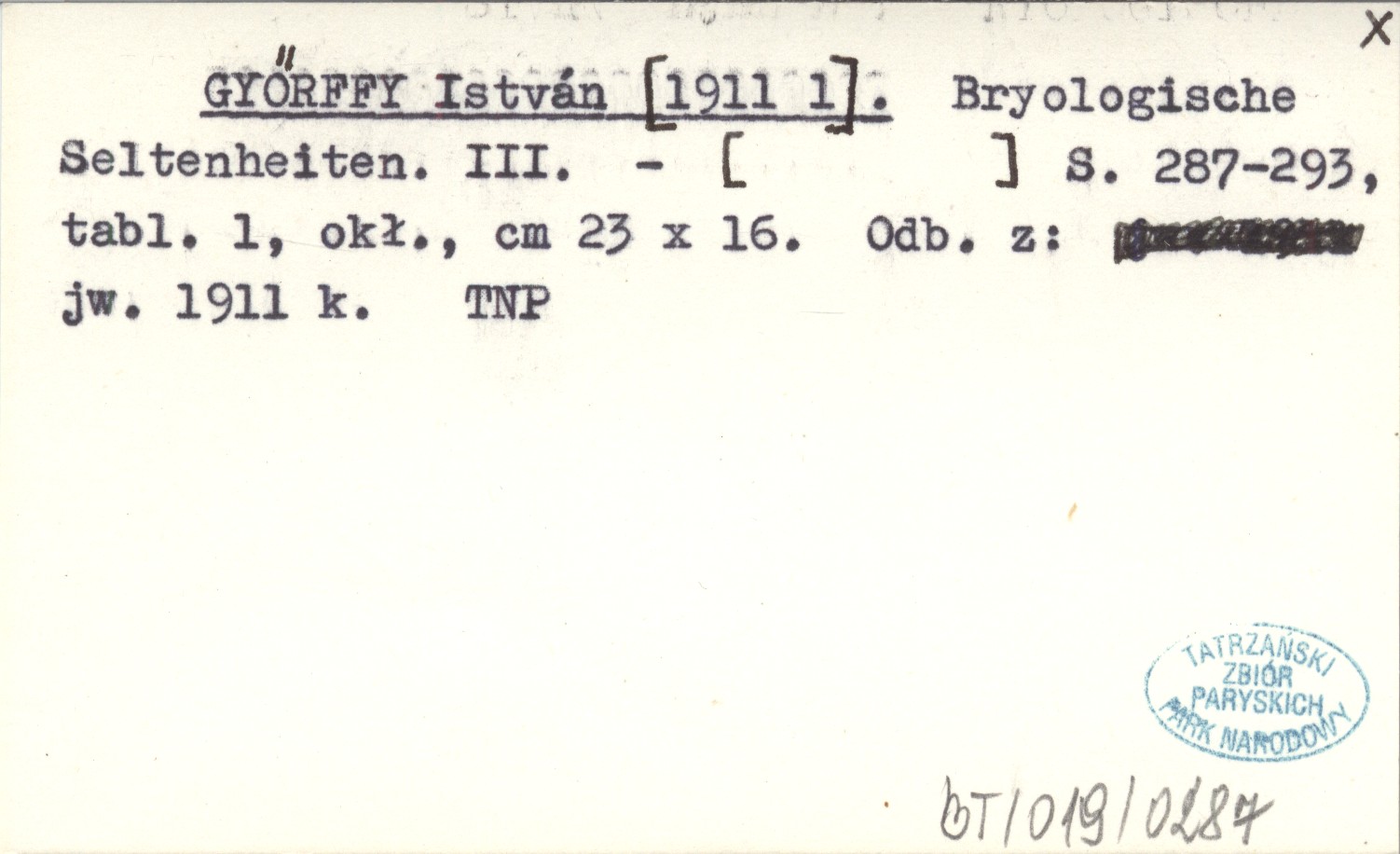 GYŐRFFY István [1911 l] Bryologische Seltenheiten. III.