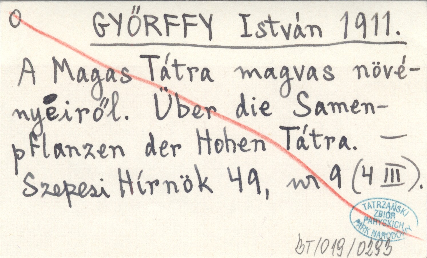 GYŐRFFY István 1911 A Magas Tátra magvas növényeiről. Über die Samenpflanzen der Hohen Tátra.