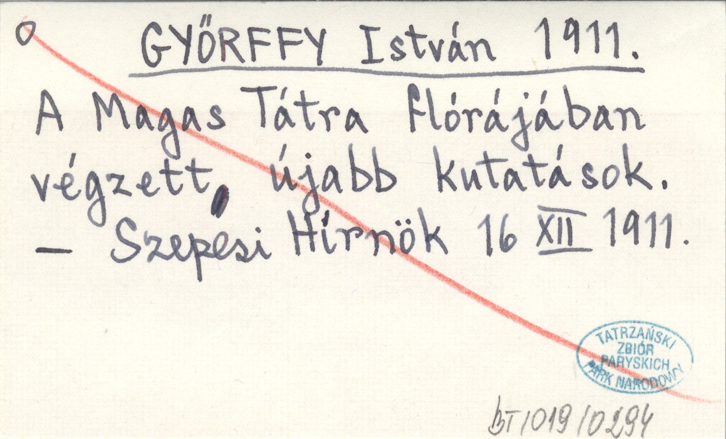 GYŐRFFY István 1911 A Mahas Tátra flórájában végzett újabb kutatások.