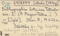 GYÕRFFY Stefan [GYÕRFFY István] 1912 f Bibliographia botanica Tatraënsis. I. (Bekanntmachung der auf die Flora der Hohen Tátra bezugnehmenden botanischen Literatur).