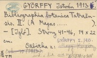 GYÕRFFY István 1913 c Bibliographia botanica Tatraënsis. II. (A Magas ...).