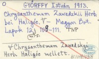 GYÕRFFY István 1913 Chrysanthemum Zawadzkii Herb. bei Haligóc. Chrysanthemum Zawadskyi Herb. Haligóc mellett.