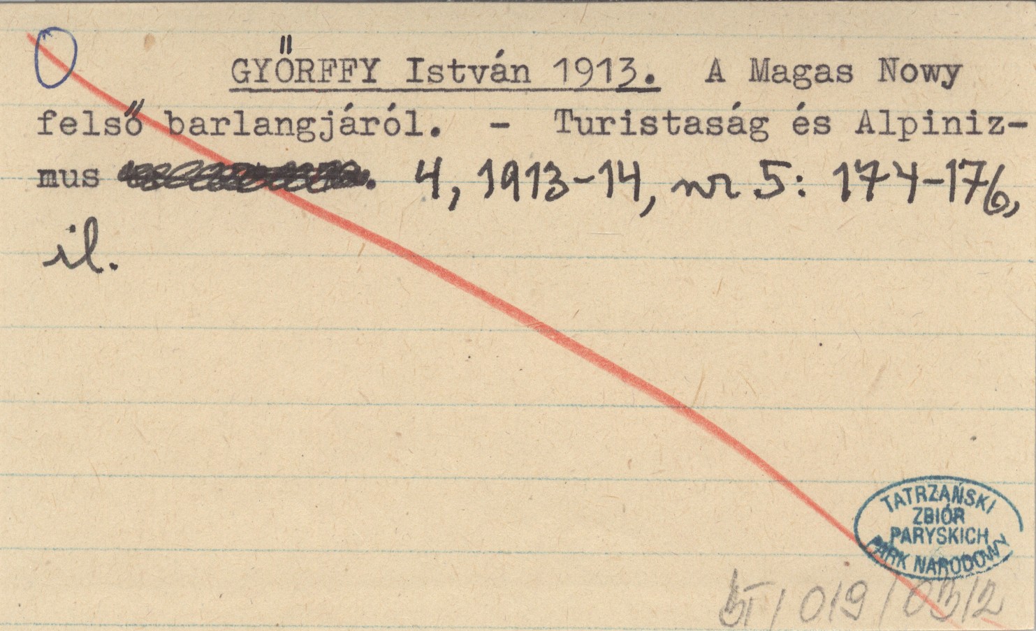 GYŐRFFY István 1913 A Magas Nowy felső barlangjáról.