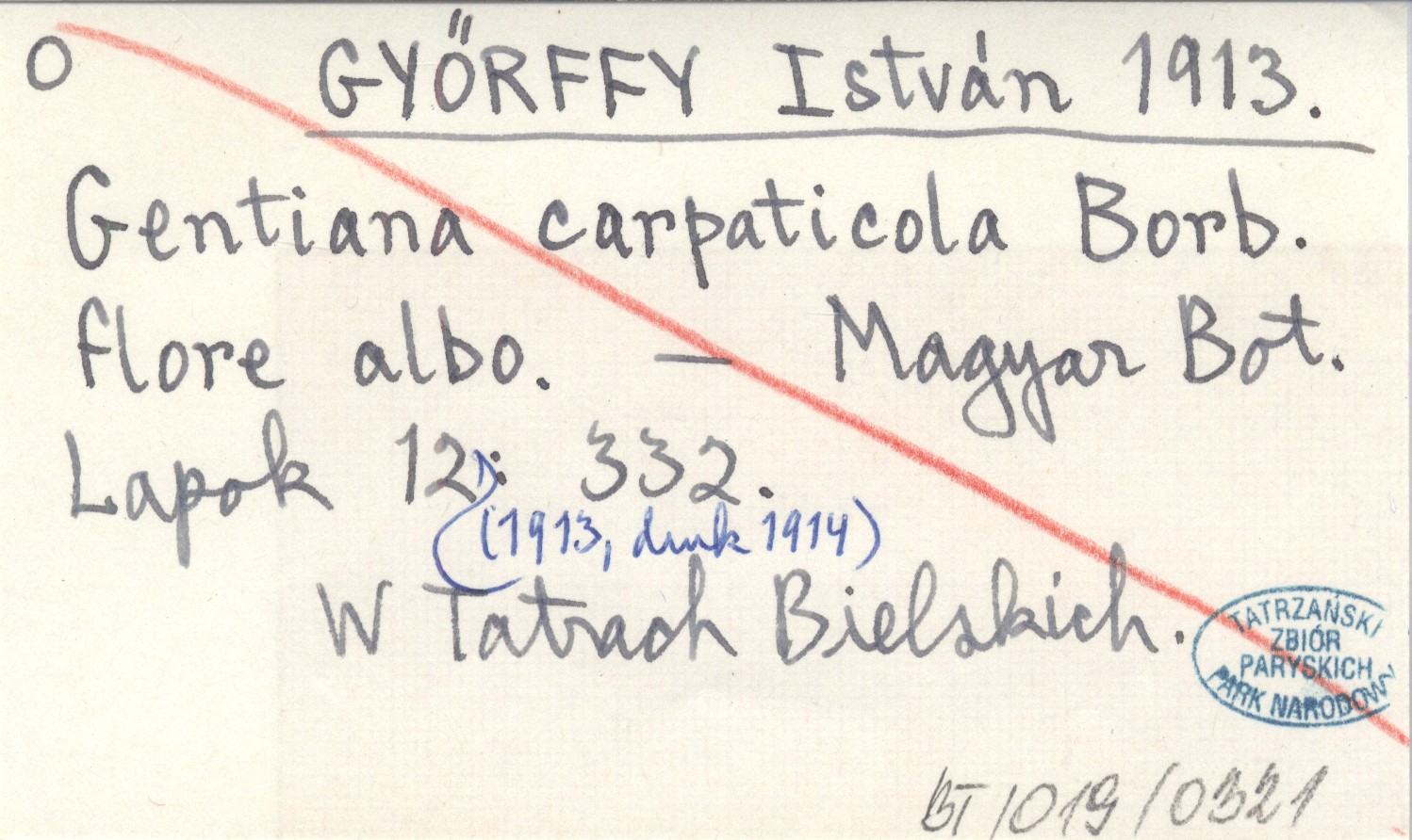 GYŐRFFY István 1913 Gentiana carpaticola Borb. flore albo.
