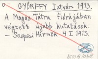 GYŐRFFY István 1913 A Magas Tátra flórájában végzett újabb kutatások.