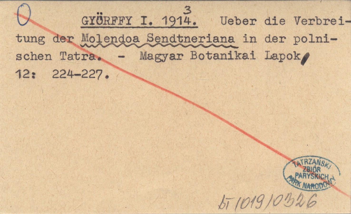 GYŐRFFY I. 1913-1914 Ueber die Verbreitung der Molendoa Sendtneriana in der polnischen Tatra.